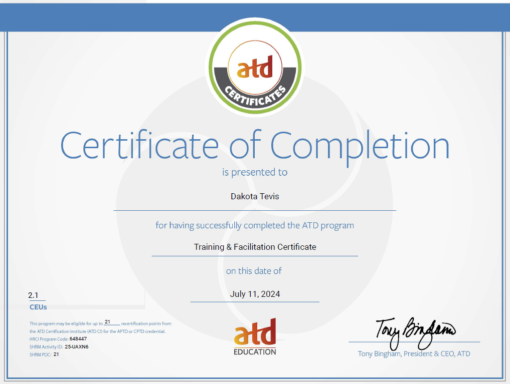 Certified Professional in Talent Development (CPTD)